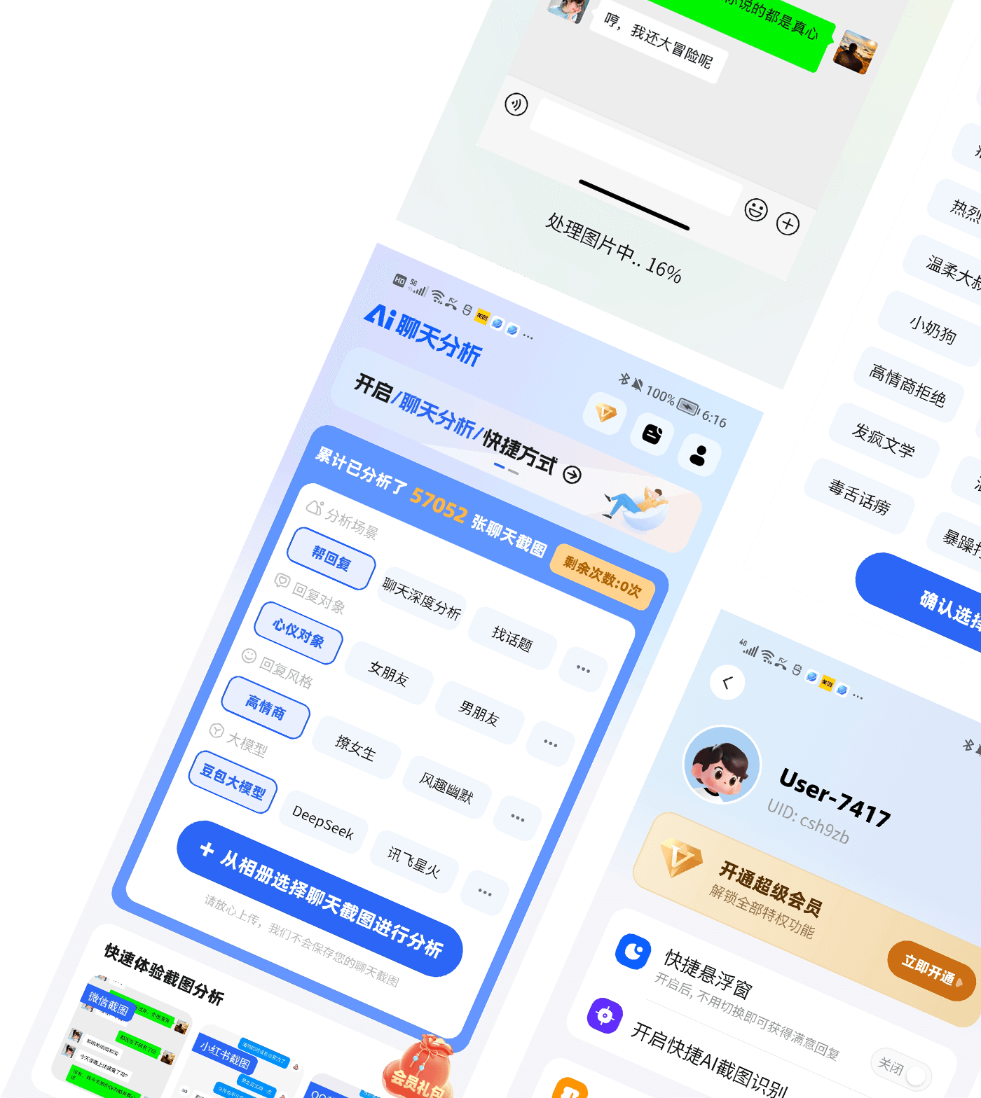 AI聊天分析旨在提升你们的沟通质量,让每一次对话都更加顺畅有爱。无论是日常闲聊、表达爱意,还是解决误会,都能为你提供贴心的回复建议,帮助你们增进感情,避免沟通误解